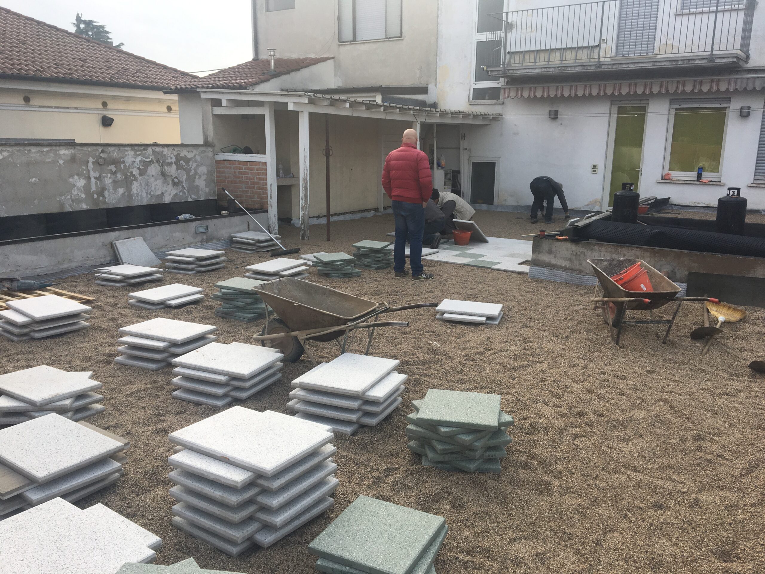 - Posa di lastre Maspe su appositi supporti (pavimento flottante)